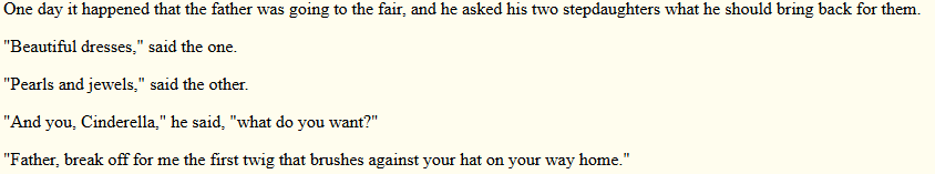 Think about Cinderella, right, who is told to dust and clean, but then a magical woman gives her a Carriage which takes her to the castle, cause that’s where she needs to be. She loses a slipper and prince charming compares foot sizes, cause that’s an interesting thing for him to do, it doesn’t need to be logical, or make sense for the character. His eyesight is 20-20, and saw her face, but the story wants the guy to compare feet, and so he does.