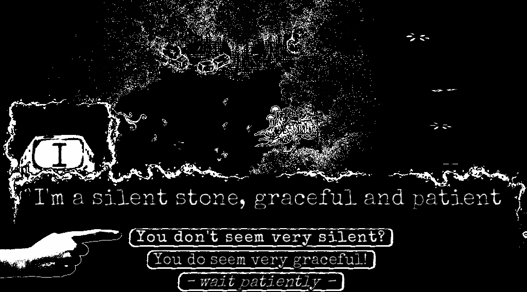 A lot of this is coming from my experience writing for the game Key Fairy. I’ve been trying to design it so that dialogue feels more like one of the background instruments of the overall narrative. In this context dialogue options are not designed to drive character or plot, but are instead used to develop a rhythm of conversation, and an overall experience of whimsy.